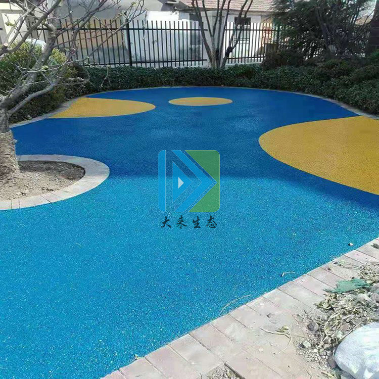 彩色强固透水混凝土做法有两种施工方法:第一种为连续施工法,在结构层浇筑单块体积满足缩缝要求时,随即摊铺面层,这种施工方法使结构层与面层粘结牢固不容易发生空鼓现象,但容易压坏结构层,不能保证结构层混凝土强度,施工时应尽量不损坏结构层。另一种方法是间隔式施工法,就是上午铺设结构层,下午施工面层。这种方法能保证结构层混凝土强度,交叉施工影响小,还可以减少搅拌机械,降低机械投入和人工投入。但是需要在面层施工时在结构层表面充分浇水湿润的情况下,采用素水泥浆做粘接层,防止空鼓现象发生。在透水混凝土施工周边为铺装带时,应优先考虑对前道工序产品的保护工作,可采用塑料薄膜铺盖的方法予以保护。