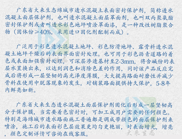 双丙聚氨酯密封处理-透水混凝土罩面漆