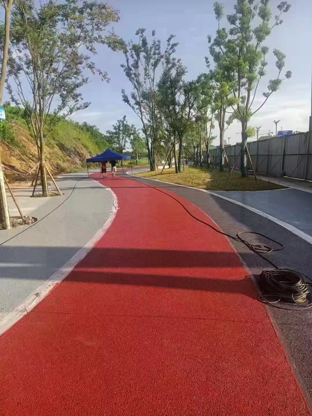 新修沥青路施工注意事项:?1、?在天气晴好的条件下,用轮胎压路机多次碾压,轮胎反复揉搓新铺筑沥青路面,改善沥青泛油条件,再进行改色施工。?2、?新铺筑沥青面层尽量是开放交通7天后再进行改色施工。如果工期紧张,必须在新铺筑路面的后2天。3、?如喷涂过程中出现路面发黄的情况,需调高喷枪嘴与路面距离或喷涂机压力调整为6.5MPa,并且喷涂时喷嘴与路面成45度夹角(此方法旨在减轻改色剂对沥青路面颗粒的渗透度,避免改色剂完全包裹碎石颗粒,导致颗粒表面无包裹油膜而脱落)。4、施工前一定要观察沥青含油量,因为世面上有全新沥青、混合沥青。跟具不同的做法制定工艺。确保施工效果 。沥青路面改色施工工艺新铺筑的沥青路面未经过车辆轮胎的弹性揉搓,沥青混合料中的沥青不能充分的泛油,路面空隙较大。改色剂喷涂施工时会渗透到空隙与游离的沥青产生少许反应。所以用沥青改色保护剂给新旧沥青路改色时需要了解施工注意事项再施工。一、新修沥青路施工注意事项1、新铺筑沥青面层尽量是开放交通1周后再进行改色施工。如果工期紧张,必须在新铺筑路面的后2天。2、在天气晴好的条件下,用轮胎压路机多次碾压,轮胎反复揉搓新铺筑沥青路面,改善沥青泛油条件,再进行改色施工。3、如喷涂过程中出现路面发黄的情况,需调高喷枪嘴与路面距离或喷涂机压力调整为6MPa,并且喷涂时喷嘴与路面成45度夹角(此方法旨在减轻改色剂对沥青路面颗粒的渗透度,避免改色剂完全包裹碎石颗粒,导致颗粒表面无包裹油膜而脱落)。产品特点 喷涂剂与原路表面产生物理化学粘附作用,使得彩色封层材料与路面间粘结牢固,确保使用耐久性。 1、能有效抵抗紫外线的氧化作用造成的表面老化,耐热老化、抗冻融、抗风化性能优,耐久性好。 2、常温下可快速施工,施工后1小时自行车即可上路,24小时即可开放交通,0℃以下低温施工开放交通时间应适当延长。
