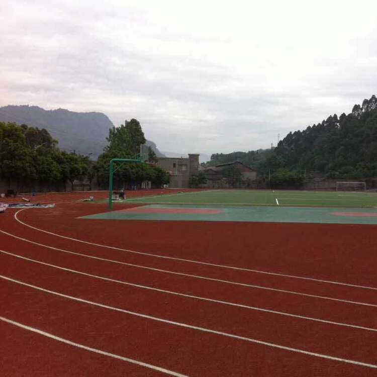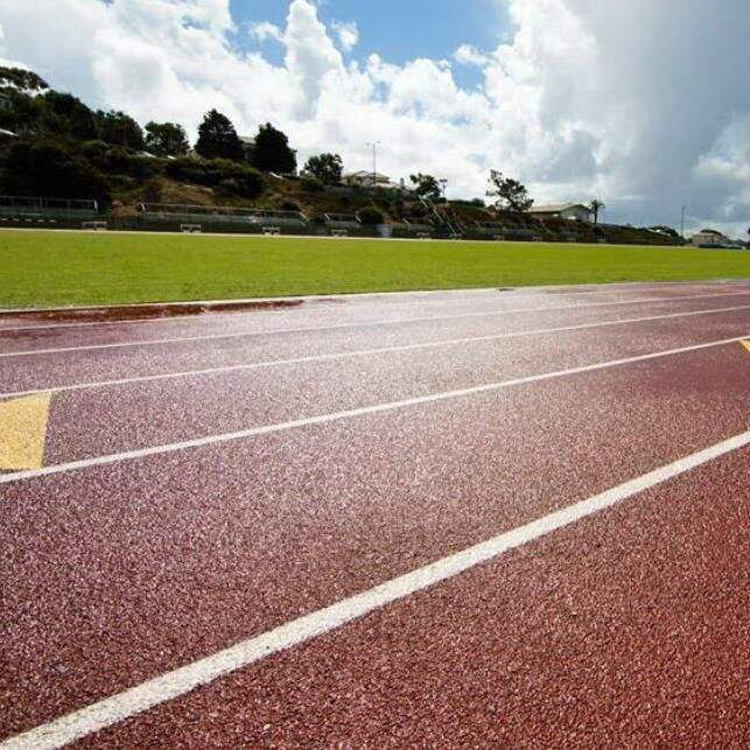 1.超卓的耐候性 选用一起的防紫外线及抗老化助剂,使商品具有超卓的防老化、抗紫外线色变功用,色彩鲜艳耐久不退.2.超卓的耐磨防滑功用 选用更为耐磨的聚氨酯面层配方,替代EPDM颗粒作为防滑面层,配方添加特种助剂及金刚沙粉进行喷涂,使面层构成一种更为防滑耐磨的高低面,既保留了聚氨酯跑道材料耐侯、耐老化等传统特征,又克服了传统聚酯跑道易脱粒的老毛病.