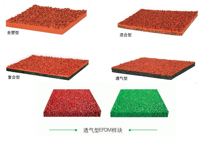 EPDM塑胶跑道 复合型塑胶跑道 混合型塑胶跑道 透气型塑胶跑道 全塑型塑胶跑道 自结纹塑胶跑道