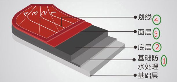 3:混合型塑胶跑道是国际标准认可的混合结构,底层用PU胶浆和弹性黑胶粒材料在现场按一定比例混合、搅拌均匀、摊铺、常温硫化成型、上层防滑面根据场地要求设计施工摊铺、喷撒2mm厚纯聚氨酯(PU)料后和撒EPDM橡胶颗粒的方法制作成型。混合型塑胶跑道的造价与复合型塑胶跑道相差不大。