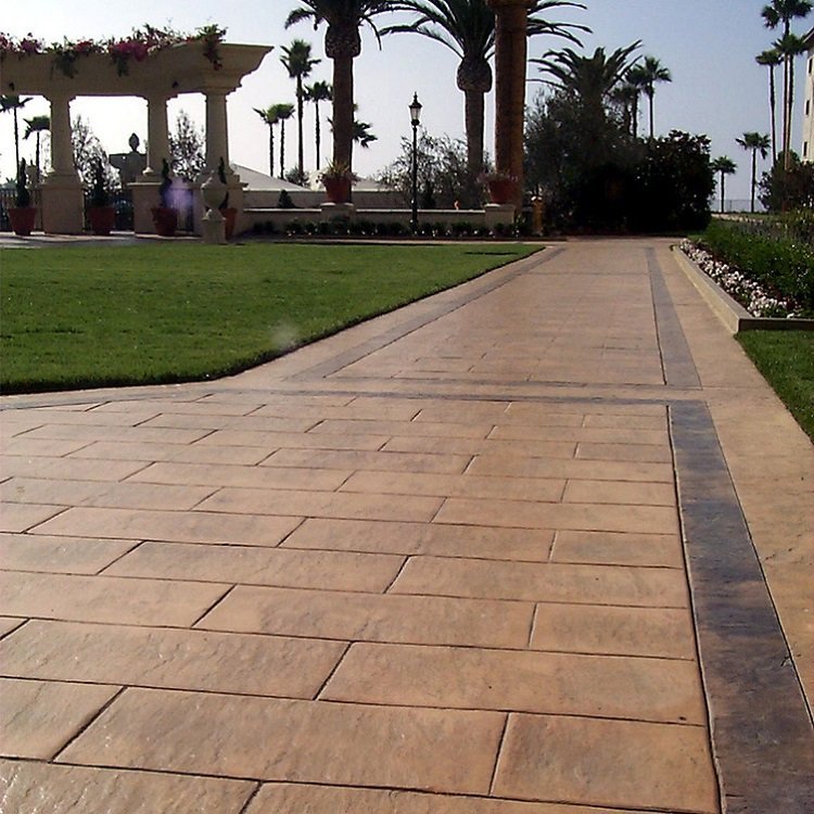 首先就是通过出厂前制作好的石纹凹凸质感模具,在巧妙的利用彩色耐磨粉、脱模粉的作用,快速赋予混凝土未干的表面上出现天然石材效果,制作出各式各样的图案效果,仿生度高达99%,几乎可以假乱真。模具就是这个样子的,市场上现在已经高达上千款式了。