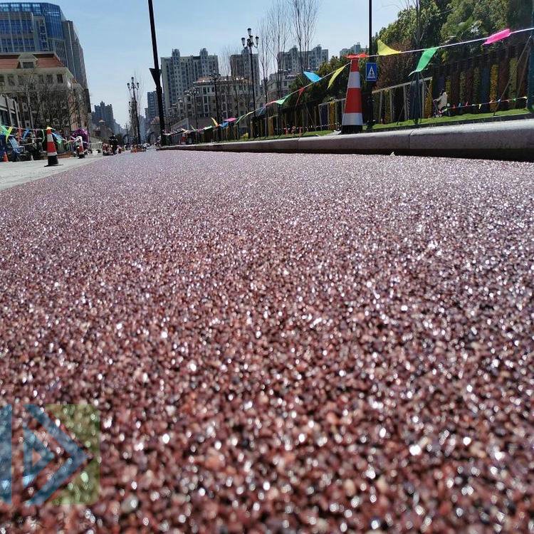3、透水胶粘石用做承载性路面,一般在水泥路面或者透水混凝土路面等硬化路面上设计为2--4公分厚为宜,不建议直接做在素土的基础上,不然基层夯土因为水流引起疏松,容易导致路面出现掉石情况。如若用作树池,因面积小可以做在素土基础上。