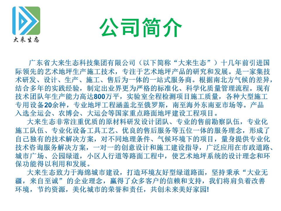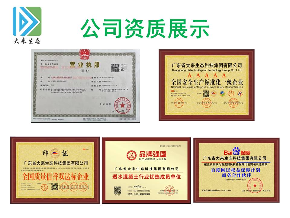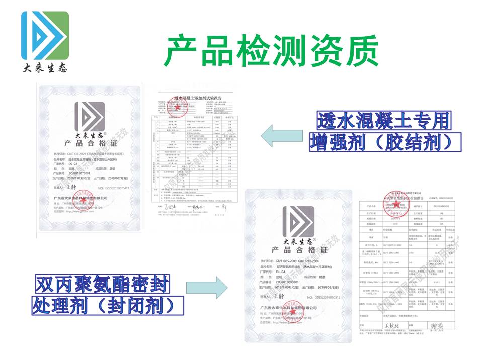 广东大来生态集团介绍透水混凝土的组成的核心原材料有哪些?什么是透水混凝土?透水混凝土增强剂,透水混凝土胶结料一样吗?,透水混凝土密封剂和罩面剂怎么区别,什么是双丙聚氨酯密封处理?怎么区分它们?的用途是什么?广东大来生态集团详细给你介绍一下透水混凝土主要组成部分,有出厂检测报告的透水混凝土厂家,有出厂合格证厂家?透水混凝土出厂合格证长什么样子?