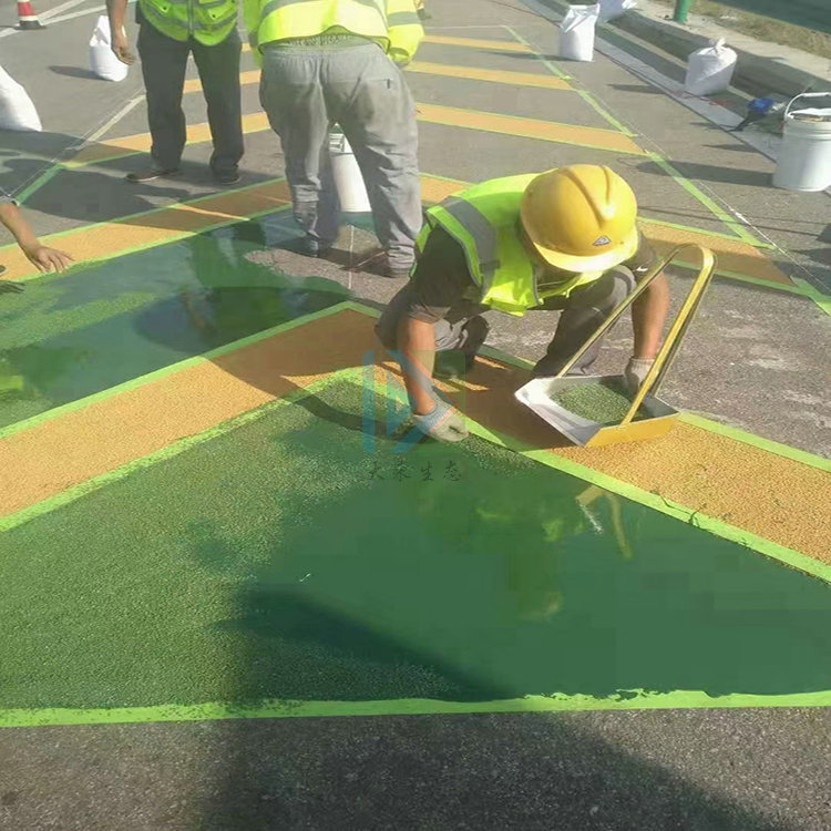 陶瓷颗粒防滑路面是将一种专用的路面防滑胶和陶瓷彩砂涂抹于原有沥青或混凝土路面上,从而满足路面高防滑值的一种颗粒型彩色防滑路面。陶瓷颗粒防滑路面是现如今全世界应用较为广泛的一种防滑路面,它能够使传统的那种灰色水泥路或黑色沥青路面通过涂抹陶瓷颗粒之后,颜色变得更加赏心悦目,并且还具有良好的防滑效果。彩色防滑路面,也是一种基于聚氨酯树脂的路面防滑系统,包括特殊配方的聚氨酯粘合剂和各种不同规格的防滑骨料,涂敷于各种路面,此种路面不仅对景观美化和道路安全方面有着明显的改进,同时因其好的耐磨性,又可以对普通路面起到延长寿命的作用。