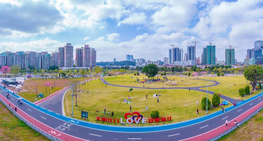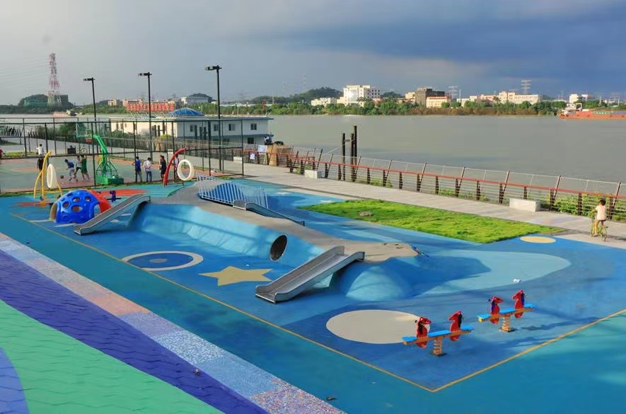值得一提的是,健康主题公园就位于西江碧道(蓬江段)上,打卡公园的同时,还可以享受美好的碧道风光。