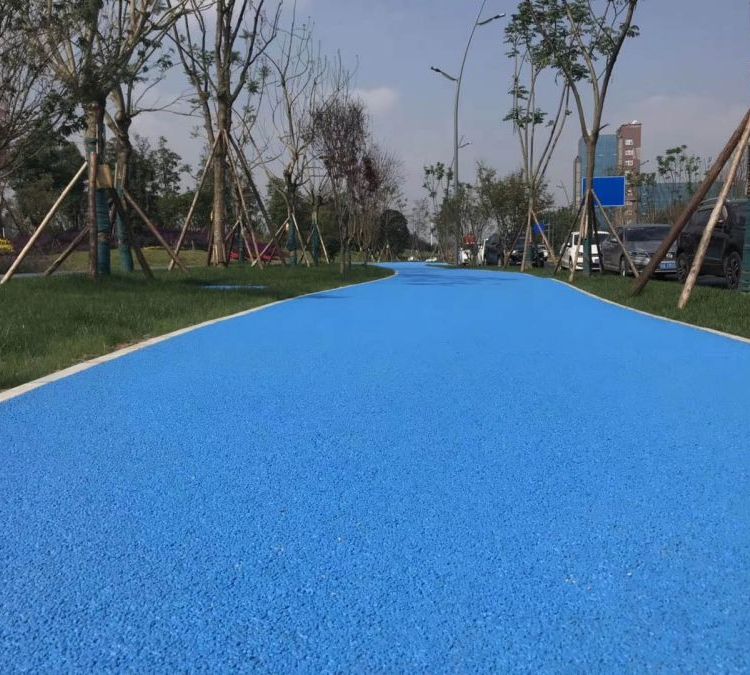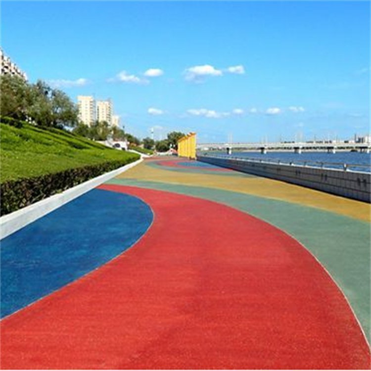 彩色透水沥青具有很好的弹性和柔性,尤其是地面防滑性特别好,能够降低交通事故的发生,特别是雨水天渗水性好,地面不易积水,加强了地面的抗滑性能,更适合中老年人走动或遛弯。