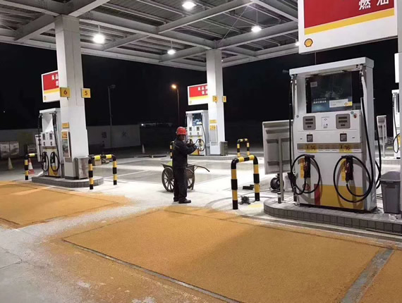广东珠海彩色防滑陶瓷颗粒加油站案例