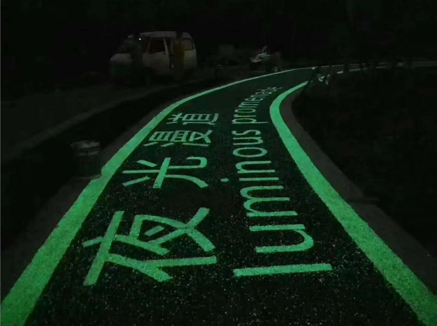 针对绿道的发展,近些年我们开发了一系列的发光碎石、发光鹅卵石和发光标志,还针对绿道路面开发了专用弹性体发光颗粒等园林绿道用的长余辉发光产品。现在已经在全国范围铺开,效果也不错,接受度是越来越高了。