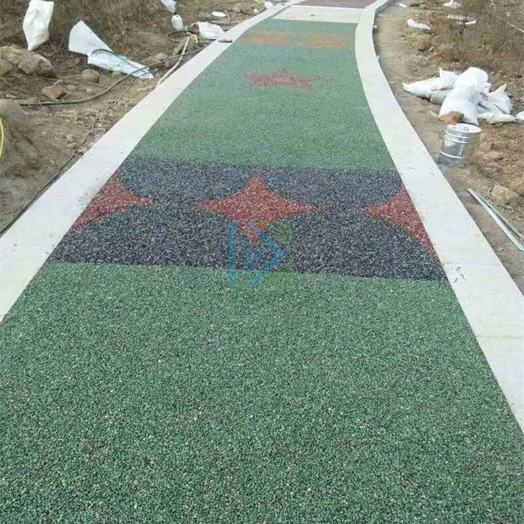 三、胶粘石具有生态、透水、透气及较好的防滑功能面且环保无毒、无辐射;