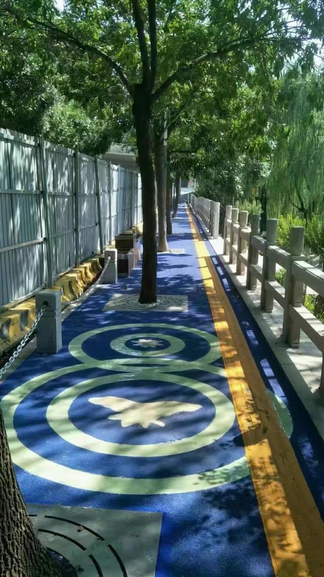 今天就讲,荧光石点撒浅灰色沥青地坪做法:搅拌→浇筑→点撒→振捣→辊压→养护。沥青透水地坪是骨架空隙结构,粗集料坚硬耐磨,形成坚固的骨架。沥青采用高粘度的改性沥青结合料,透水沥青混凝土面层既有丰富的纹理结构,又有较大的空隙率,从而保证较高的透水能力,迅速排除雨期的路表积水。
