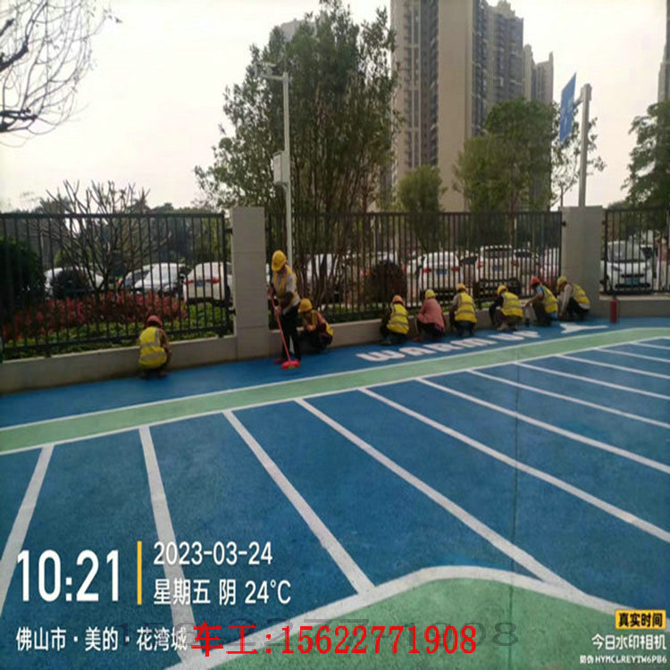5、喷涂好的路面需要做好围蔽保护措施,干固前不能走人或其它物件碰触。一般干固时间为2-4小时左右。